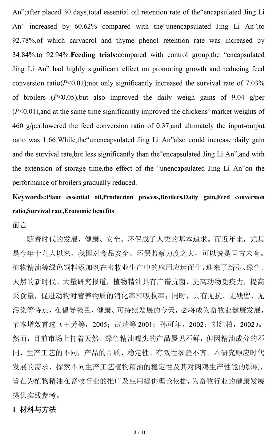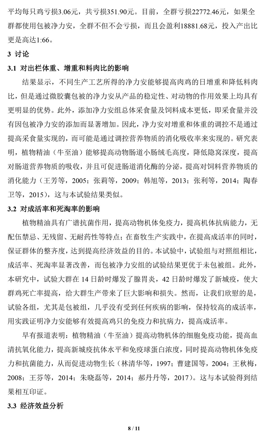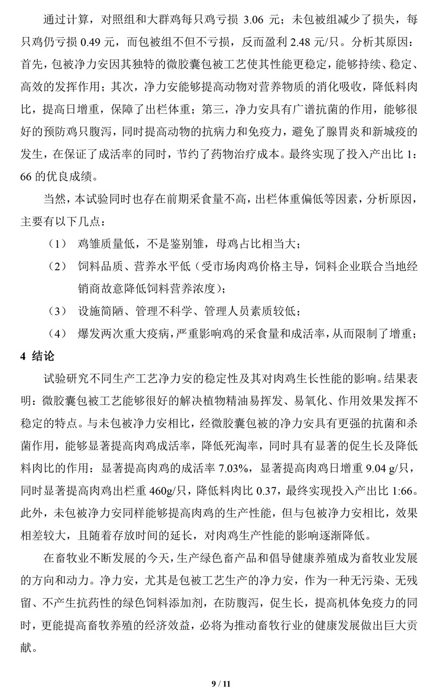 不同工藝的凈力安對AA+肉雞生產(chǎn)性能的影響